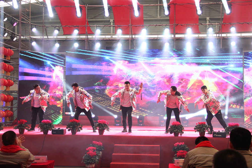 另外還有運(yùn)營(yíng)中心帶的來(lái)「你笑起來(lái)真好看」舞蹈串燒和「漂洋過(guò)海來(lái)看你」男女合唱;五金件運(yùn)營(yíng)中心的陳星為我們帶了歌曲「懷念青春」;財(cái)務(wù)部的小伙伴們?yōu)榇蠹規(guī)?lái)唱、跳、RAP組合串燒;這些精彩的表演一步步把整個(gè)年會(huì)推向高潮,全場(chǎng)不時(shí)響起陣陣掌聲!